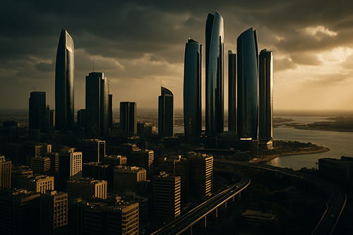 alt: Modern Abu Dhabi skyline representing Middle East finance, banking, and fintech growth under golden sunset light.